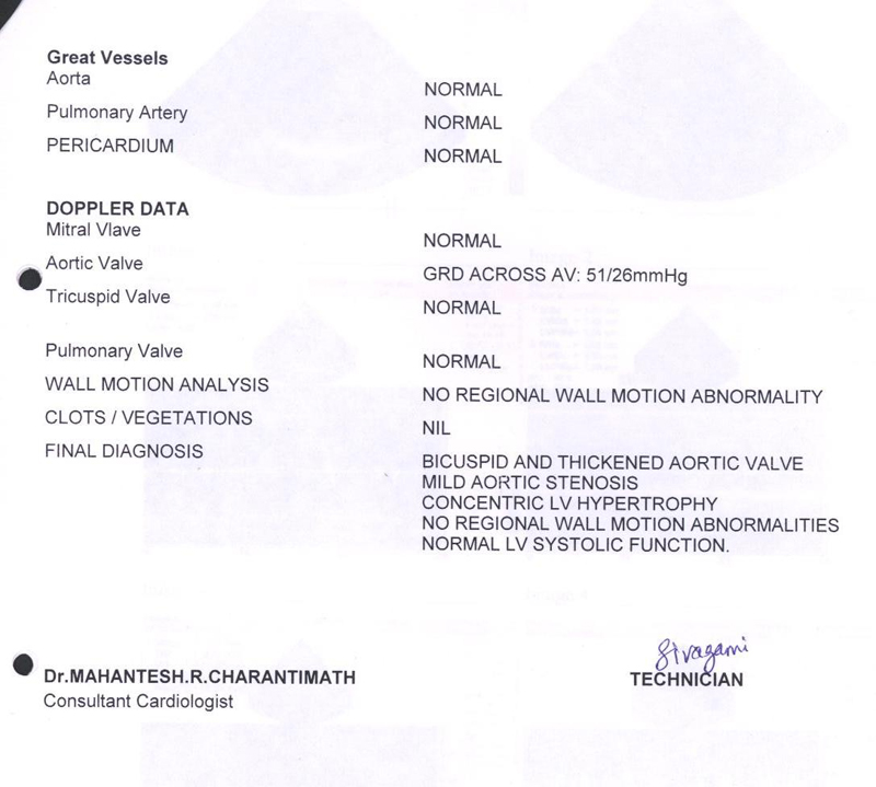 Echocardiography was done and shows that the valves are much better, the abnormal murmur heard using stethoscope have almost disappeared. Echocardiography report is shown in FIG3. Placebo continued |
