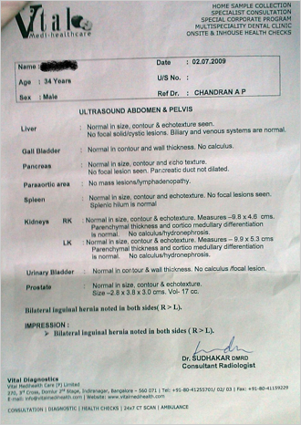 This was the Condition of patient before Homoeopathic treatment. A Case of Hernia   Patient was given single doses of Sulpher 1m on 2nd July 2009, 2nd September 2009 and 21st Oct 2009.